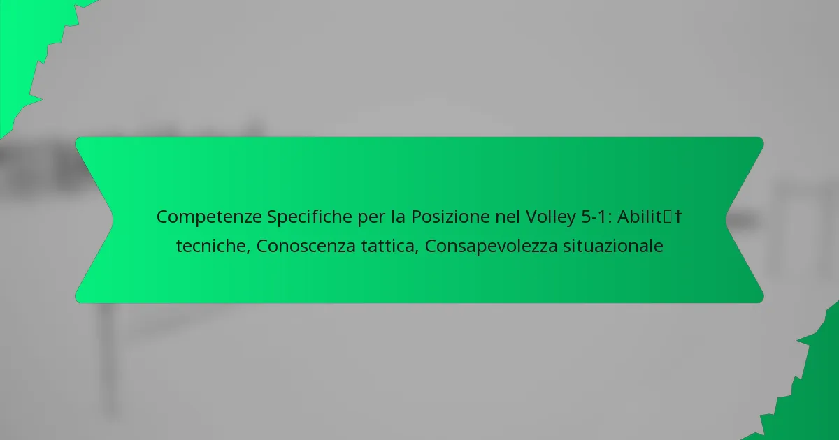 Nel volley 5-1, padroneggiare le abilità specifiche per ogni posizione è essenziale per ottimizzare le prestazioni della squadra. Ogni ruolo richiede abilità tecniche uniche, conoscenze tattiche e consapevolezza situazionale, che insieme migliorano la comunicazione e il processo decisionale in campo. Comprendendo questi aspetti critici, i giocatori possono contribuire efficacemente al successo della loro squadra e adattarsi alla natura dinamica del gioco.