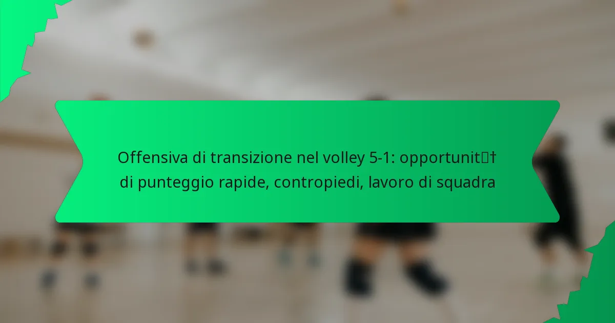 L’attacco in transizione nel volley 5-1 è una strategia dinamica che si concentra sulla rapida conversione delle giocate difensive in opportunità di punteggio. Sfruttando il lavoro di squadra, una comunicazione efficace e un rapido movimento della palla, le squadre possono sfruttare la disorganizzazione degli avversari e creare contropiedi che portano a punti veloci. Questo approccio sottolinea l’importanza di una posizione e di un tempismo precisi per massimizzare il potenziale di punteggio durante le transizioni.