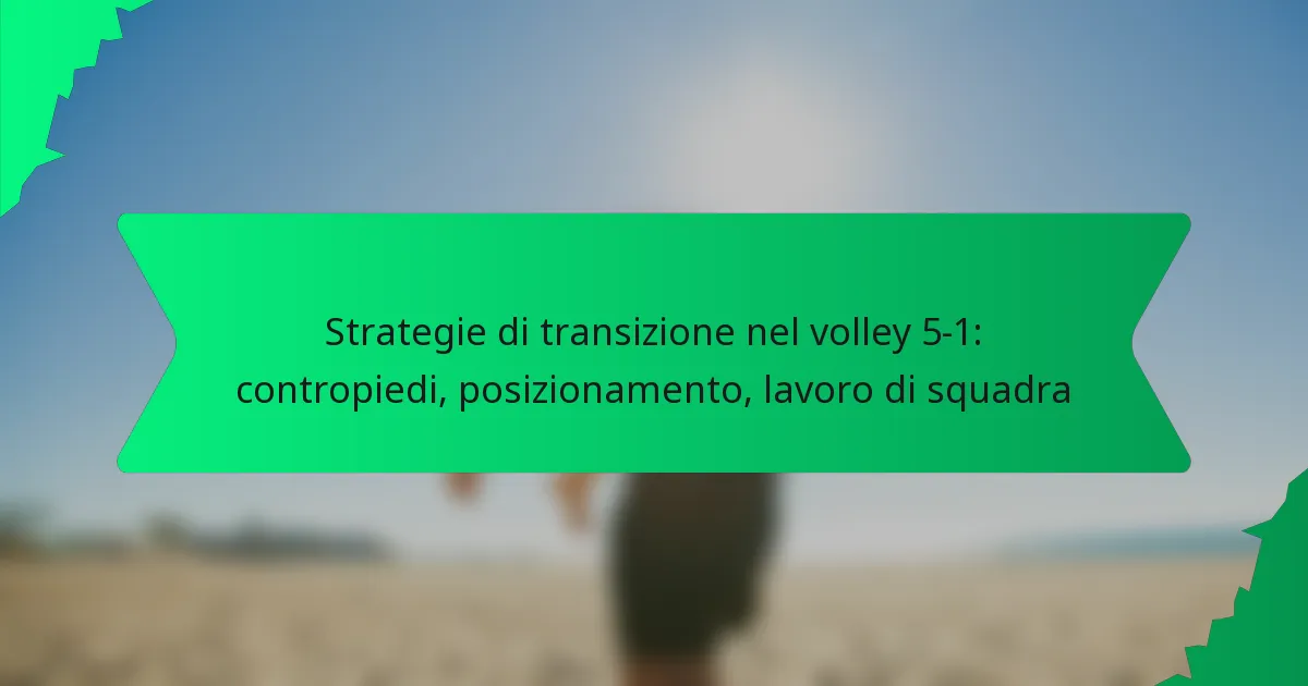 Nel volley 5-1, padroneggiare le strategie di transizione è essenziale per massimizzare le opportunità di punteggio e mantenere il ritmo di gioco. Contropiedi veloci, posizionamento strategico e lavoro di squadra efficace giocano ruoli fondamentali nel passare rapidamente dalla difesa all’attacco, consentendo alle squadre di sfruttare le debolezze degli avversari. Concentrandosi su questi elementi, i giocatori possono migliorare le loro prestazioni complessive e ottenere maggiore successo sul campo.